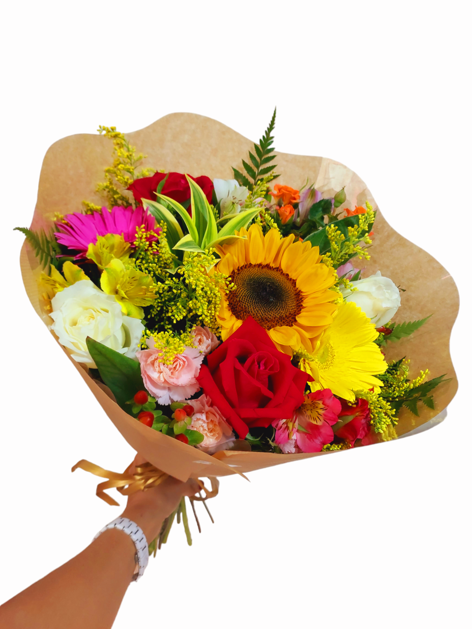 Carregando...Encante-se com o 'Buquê Misto de Alegria', uma joia da nossa categoria 'Flores mistas...!!'. Este buquê exuberante é composto por uma variedade de flores vibrantes, incluindo girassóis radiantes, rosas românticas, alstroemérias delicadas, rosas spray elegantes, cravínia, hypéricos atraentes e tangos exóticos. Além disso, uma diversidade de folhagens dá o toque final a este espetáculo floral. Cada detalhe é cuidadosamente pensado, desde a seleção das flores até a embalagem caprichosa, que realmente faz a diferença. Este buquê é mais do que um simples arranjo floral, é uma expressão de alegria e beleza!