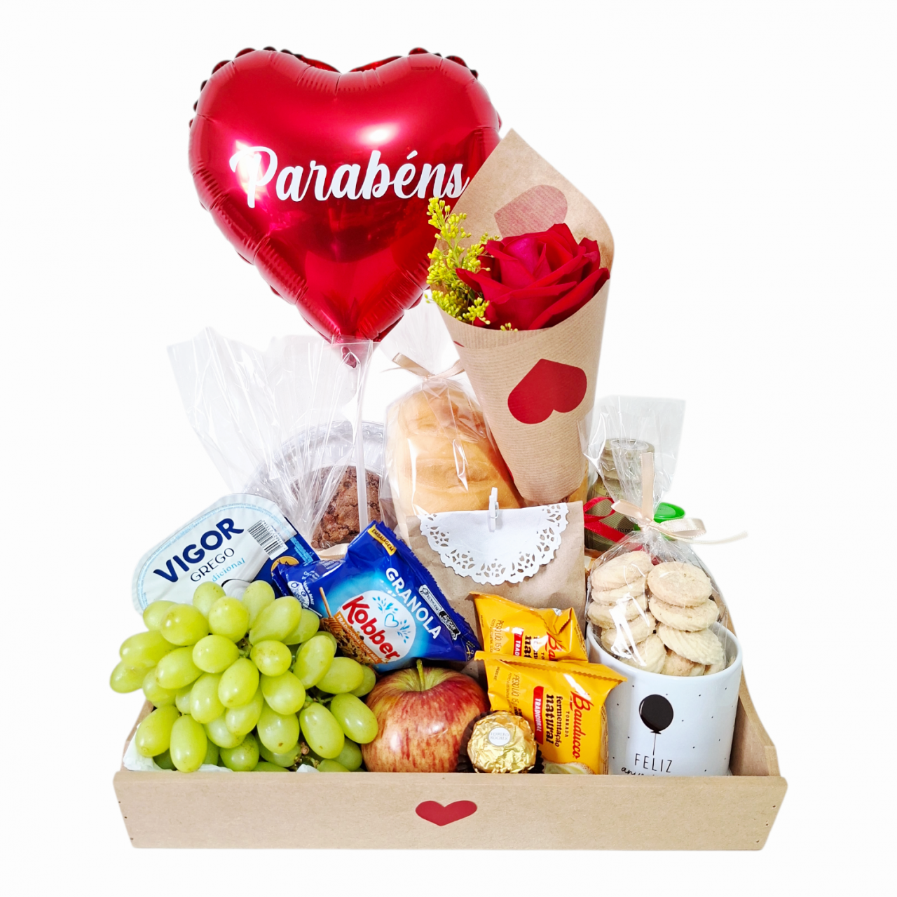 Lindo e sofisticado café da manhã recheado de delícias! Feito com todo carinho e capricho, nossas cestas sempre vão com pães e frutas fresquinhos! Contem: